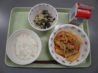 麦ご飯 ・ 鶏肉のトマト煮 ・ 千切大根とひじきのサラダ