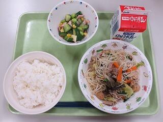 減量麦ご飯 ・ 炒めビーフン ・ コロコロサラダ