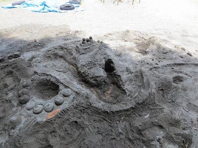 学校の砂場に1,2年生のオリジナルワールドができました。
