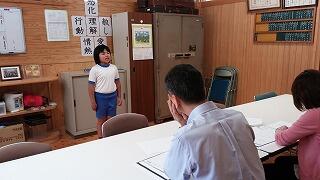 大河内小学校では、様々な場面で自信を持って発表できるよう、子どもたちの表現の場を設定しています。その一つが音読発表会です。月に一度、1か月かけて練習した詩などの暗唱をします。校長室で校長先生や保健の先生の前での発表です。