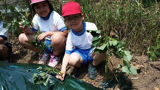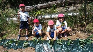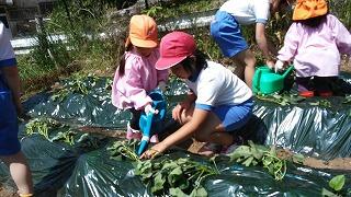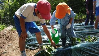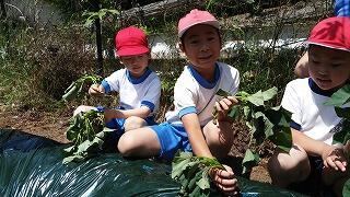 隣の保育所の子どもたちと一緒に楽しく苗植えをしました。