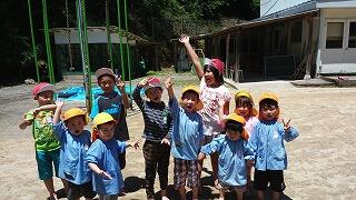 生活科の「遊び場へ行こう」では、保育所の子どもたちと校内の遊具などをつかって交流しました。