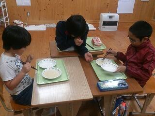 今年は、御神の滝に行きましたが、晴れている時の滝の様子と違い、風が吹き、とても細かい水しぶきが飛んでくるなど自然の力を感じることができました。また、今年は、カレーではなく、ハヤシライスを作りました。3,4年生は、米焚きとホウレンソウの和え物作りを担当し、夕食を美味しくいただきました。宿泊学習の経験をどんどん生かしてほしいと思います。