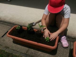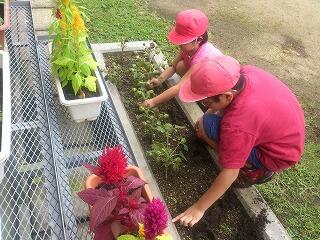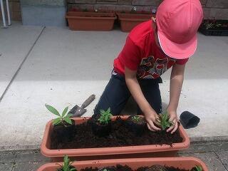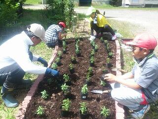 7月15日(水)の3校時に、総合の学習で、種から育てた苗をプランターに植え替える作業を行いました。用務の先生にもお手伝いいただき、自分の好きな苗を植えていきました。とても小さかった種が成長する姿を見て、今後も花づくりを頑張っていきたいと思います。