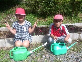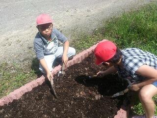 7月16日(金)の総合の時間に、本郷集会所に3,4年生が育てた花を植えに行きました。