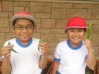 9月2日(木)、順調に育ったオクラを収穫しました。顔の大きさにまで成長した(しすぎた?)ものもあり、子ども達は大喜びでした。