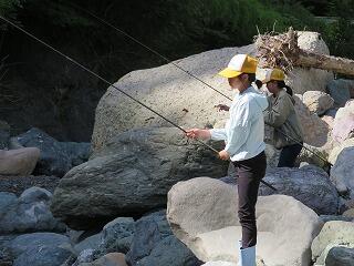 子どもたちも楽しみにしていました。「今年こそはヤマメを!」と意気込んで、思い思いに竿を出します。