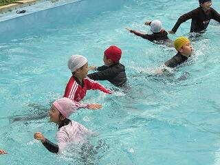 今年最後の水泳の時間に「着衣泳(ちゃくいえい)」をしました。服を着たまま泳ぐ体験です。