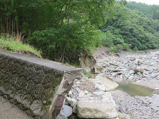 学校前の一ツ瀬川に、昔は吊り橋がかかっていたそうです。その吊り橋を支えた塔が残っています。今はこいのぼりを泳がせる時に使っています。