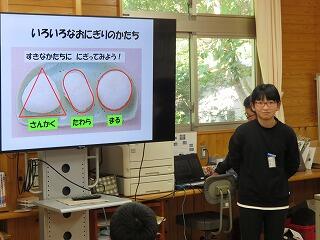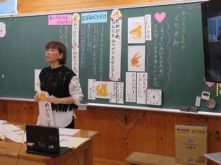感想を言います。1年生も、手を挙げて感想を言いました。