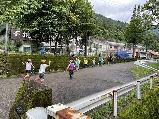 演習林施設から学校へみんなで登校です。さあ、今日も