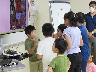 チームに分かれて、話し合います。クイズの答えは、2日目に実際に演習林に行って確かめるそうです。わくわくしますね!