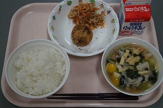 麦ごはん さばメンチカツ おかか和え いももち汁