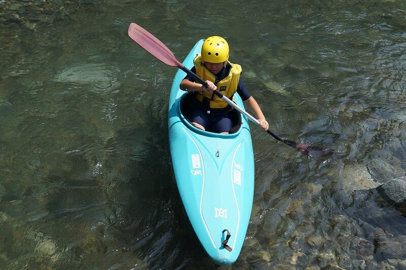 バランスを取るのはそう難しくなかったようですが、水の勢いが少し強く、川の流れに向かってこぐのは難しいようでした。