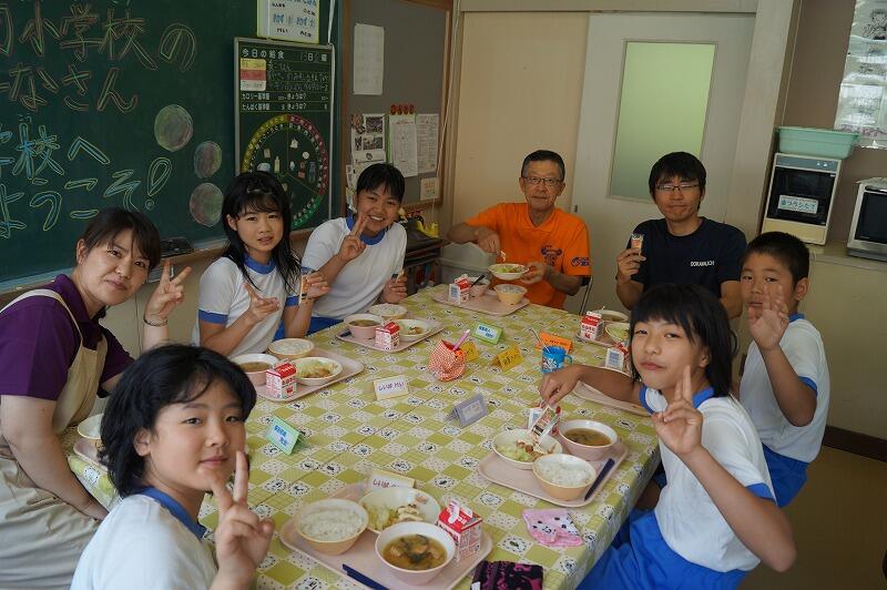 給食は全員そろってランチルームで食べました。いつもの倍の人数でとてもにぎやかでした。