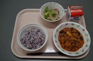 カレーは子どもたちが食べれるような辛さで、青豆が入って