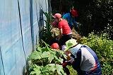 当日は、気温が高く子どもも大人も汗まみれになっての作業でした。学校周辺の草刈