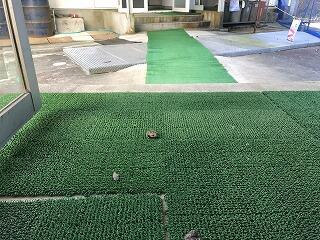 運動場にあるいつもの校門からは入りません。水びたしの運動場に足跡がついてしまうからです。