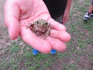 子どもたちには冷たい山水ですが、カエルにとっては快適なようでした。