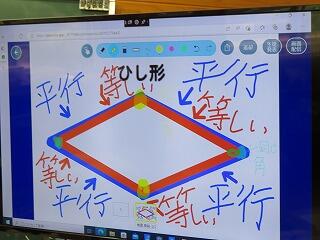 4年生の算数。ひし形の特徴を考えて、コンピューターに書き込みます。