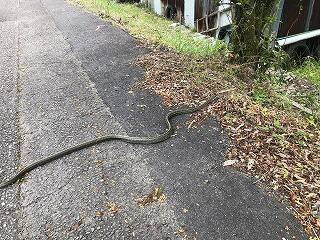 学校前の道路を、150㎝はあろうかというアオダイショウが渡っていました。シマヘビはときどき見かけるのですが、アオダイショウは珍しいです。名前のとおり、とてもきれいな薄青色の体でした。
