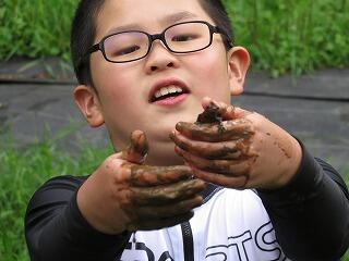 土の中からは、幼虫やイモリの幼生らしきものも出てきました。これにも子どもたちは興味津々です。