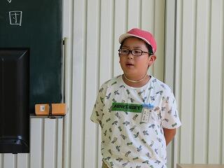 「ぼくは、今日のプールで、だるま浮きをがんばりたいです。」。1年生も、代表のあいさつがすっかり板についてきました。