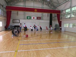 続いては「めちゃぶつけ」。コートの区切りのないドッジボール、といったゲームです。体育館中を走り回ります。