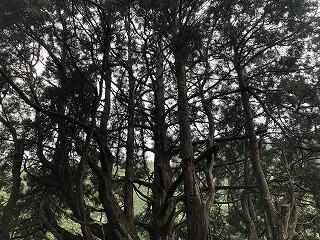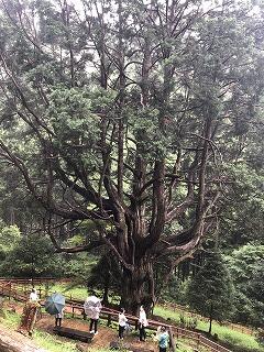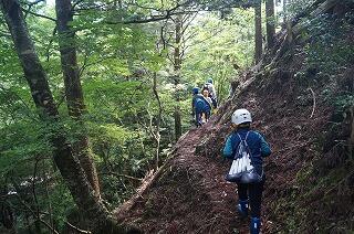雨も上がって探検日和。学校を出発して、杉木立を歩きます。