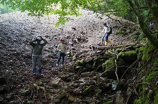 校舎裏の崩壊した崖です。土砂を取り除く工事の後に、