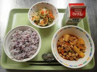 麦ごはん ・ 筑前煮 ・ ごまネーズ和え