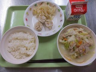 子どもたちは、揚げ鶏のレモンあえを楽しみにしていました。少し酸味があってとってもおいしかったです。具だくさんの五目スープは春雨も入っていて食べやすかったです。