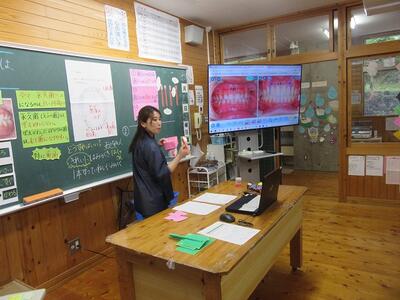 養護教諭の先生より月目標「歯を大切にしよう」に関するお話しをしていただきました。