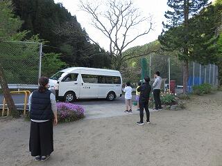 演習林施設から学校へみんなで登校です。さあ、今日も