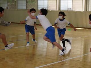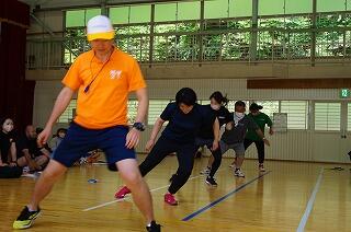 事務の先生も給食室の先生も、練習しました。30分間続ける続けるためには、大河内小全職員の連携が不可欠です。