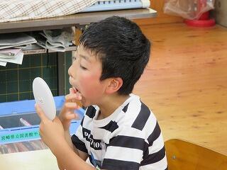 次に、自分の歯を観察しました。全員、自分専用の手鏡を持っています。