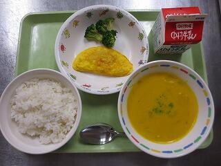 麦ご飯 ・ パンプキンスープ ・ オムレツ ・ 添えブロッコリー