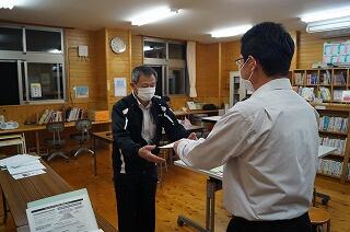 4名の学校評議員の方に委嘱状を交付し、本年度の学校経営等に