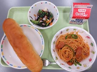 パン ・ なすのミートスパゲティ ・ ほうれん草サラダ