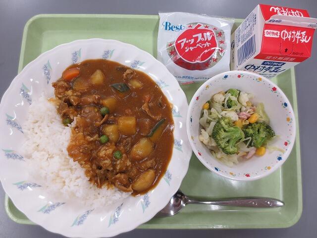 ボリューム満点の給食でした。午後からの宿泊学習に向けて栄養がつきました!
