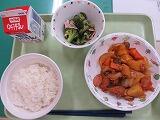 野菜たっぷりの給食でした。ピーマンが苦手な子も