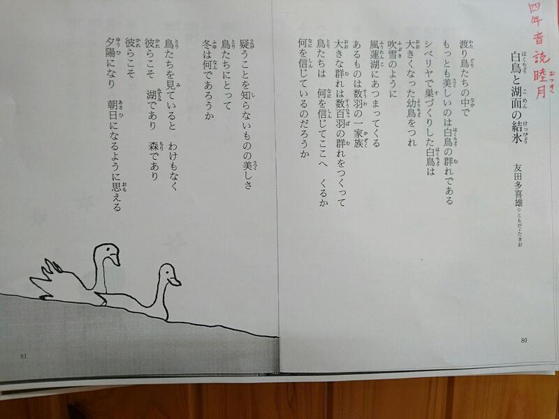 ニーカー」、4年生は、友田多喜雄さんの「白鳥と湖面の結氷」です。2人とも詩の意味を考え