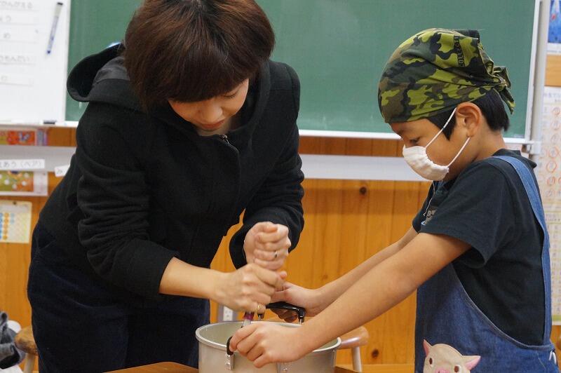 1・2年生は、生活科の授業でお芋で茶巾しぼりを作りました。