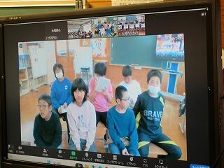 5・6年生が、インターネットを通じて、ほかの学校と交流学習をしていました。