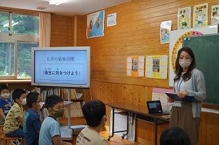 次に、6月の目標「衛生に気をつけよう」について保健室の先生から話がありました。