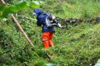 午後からは、「奉仕作業」です。学校周辺の草刈りと「せせらぎ広場」のテーブルづくりをしていただきました。