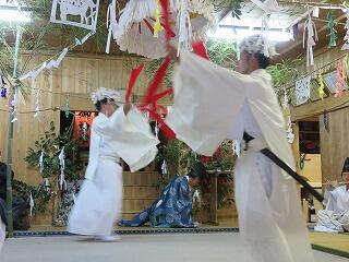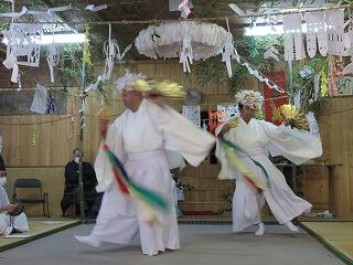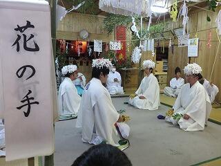 ずらりと並べましたが、数十分かかる演目もあります。舞い手の方々(「ほうりこさん」と呼ばれます)は、舞い終えると汗だくの顔で、肩で息をしています。