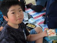 心配していた天候ですが、ここで小雨が降り始め、昼食が心配されましたが、先着の西都カトリック幼稚園様から場所(あづま屋)を分けていただき、大変ありがたかったです。幼稚園の先生方、かわいい年長さんの皆様、本当にありがとうございました!