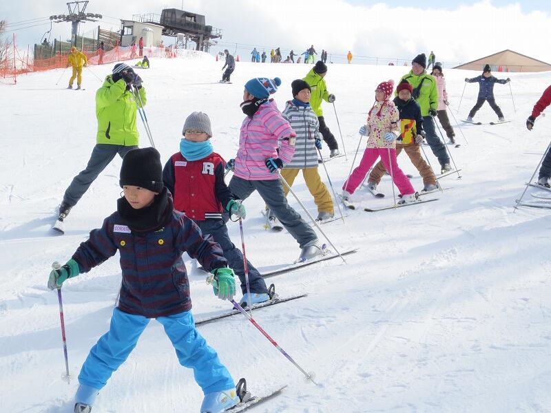 早朝、五ヶ瀬ハイランドスキー場のバスが迎えに来て、児童7名全員と保護者と先生方がそろって出発しました。