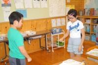 子どもたちは、リズムよく発音したり、ゲームをしたりしながら楽しく英語に慣れ親しんでいました。